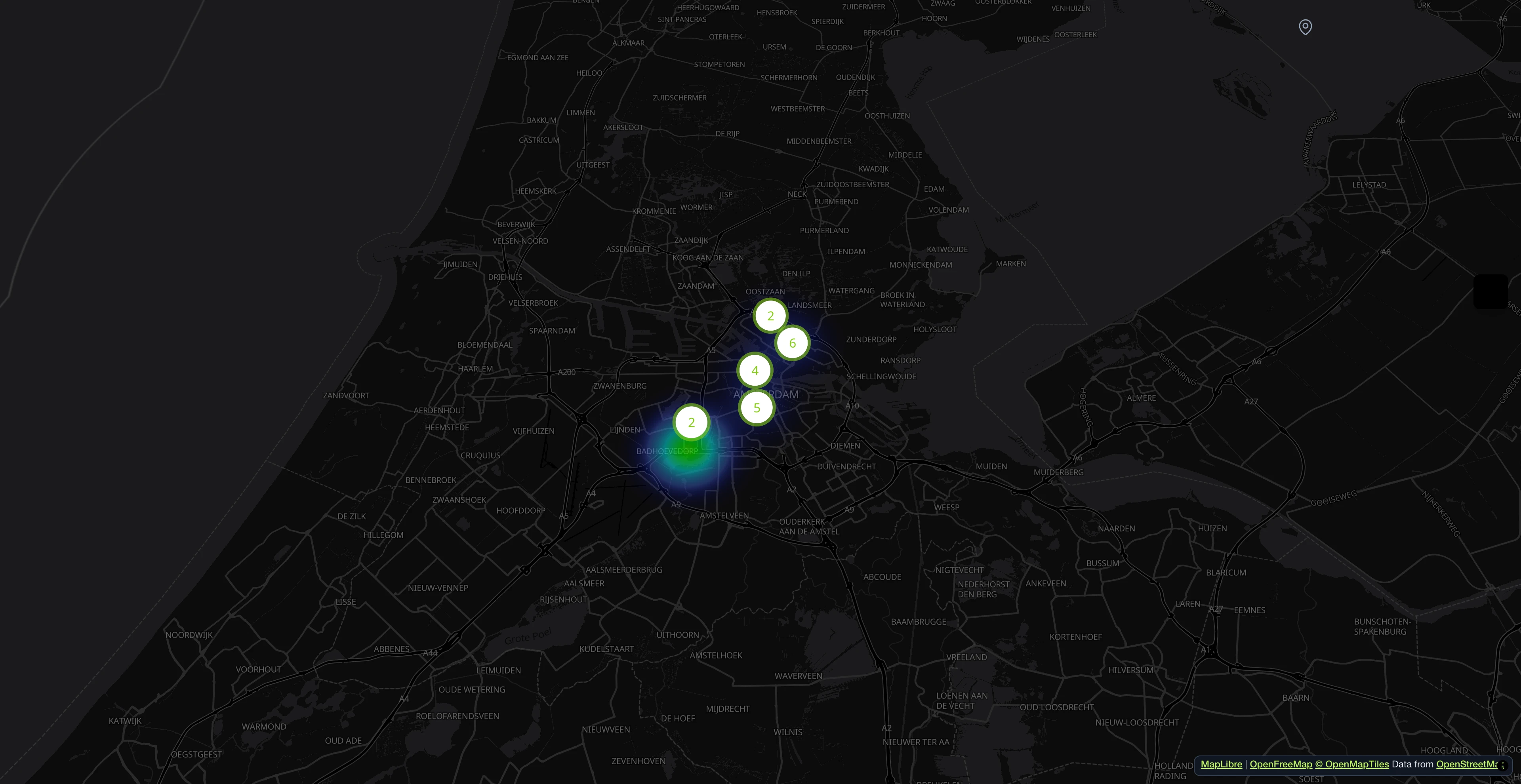 Bidragare markerar problem med foton och plats. Markörer klustras automatiskt och färgkodas efter kategori.